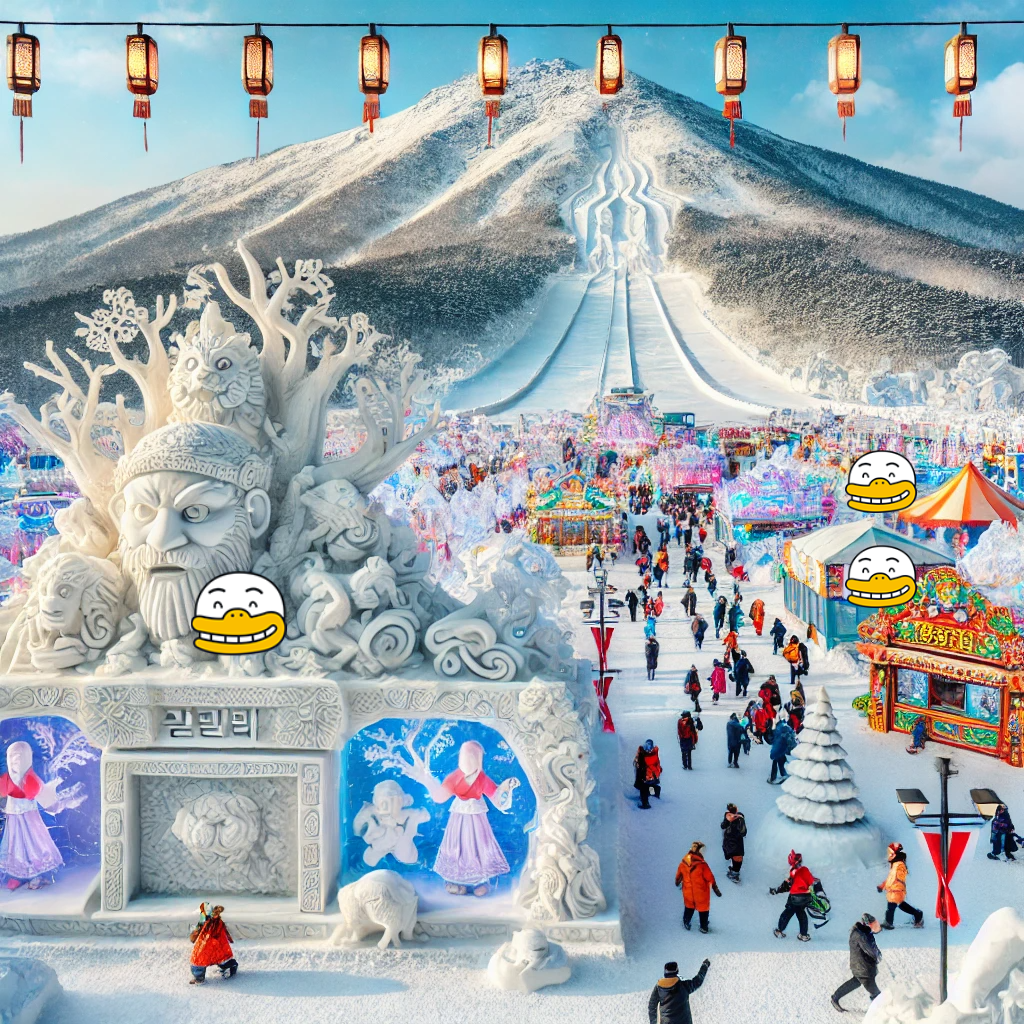 눈꽃축제에서는 웅장한 얼음 조각과 다양한 조명이 어우러진 전시를 감상할 수 있으며, 밤이 되면 더욱 몽환적인 분위기를 연출합니다. 또한, 눈썰매장과 스노보드 체험, 전통문화 체험 등이 제공되며, 사진 애호가들에게는 인생샷 명소로도 유명합니다.