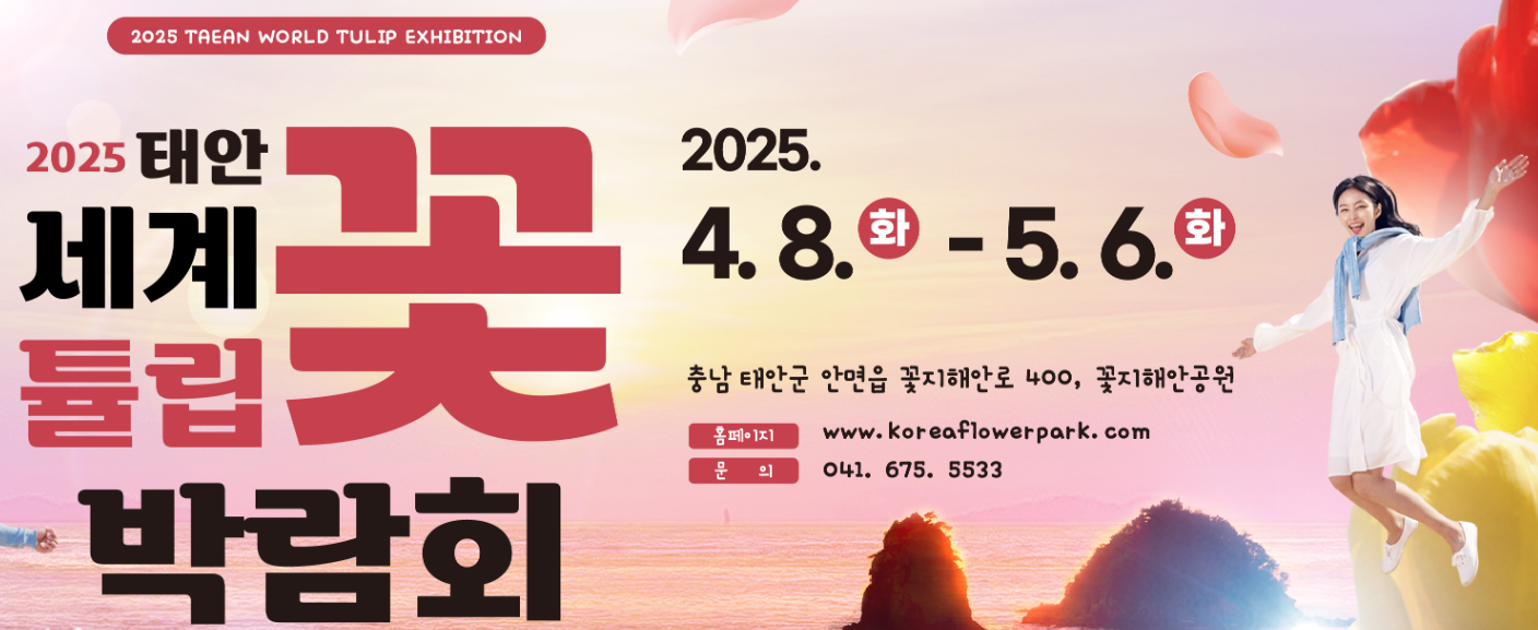 태안 튤립축제는 매년 봄 충청남도 태안군에서 열리는 대한민국 대표 꽃 축제 중 하나로, 세계 5대 튤립축제 중 하나로 선정될 만큼 아름다운 풍경을 자랑한다. 네덜란드에서 수입한 다양한 종류의 튤립이 만개하며, 넓은 꽃밭이 형형색색의 아름다운 색채로 물든다.
