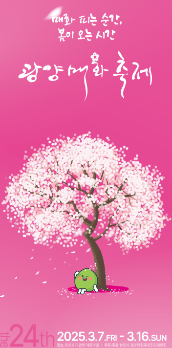 광양 매화 축제는 매년 봄, 섬진강을 따라 흐드러지게 피는 매화를 감상할 수 있는 대표적인 봄꽃 축제입니다. 전라남도 광양시 다압면 매화마을에서 개최되며, 아름다운 자연경관과 함께 다양한 체험 프로그램을 즐길 수 있습니다. 2025년 광양 매화 축제의 일정, 개화 시기, 추천 명소, 교통 및 숙박 정보를 확인하여 완벽한 봄 여행을 계획해 보세요.